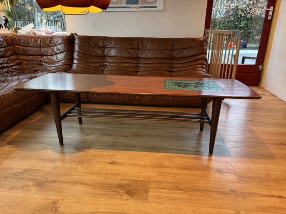 Step into the world of vintage charm with this Louis van Teeffelen coffee table. Perfect for adding a touch of mid-century modern flair to your living room, this piece is both stylish and functional. The rich brown wood is beautifully complemented by a unique ceramic tile inlay, adding a pop of color and character.