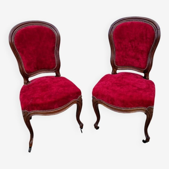 Pair of Louis XV or Louis Philippe style chairs, very baroque, ideal as a bedroom chair, note that one of them will need to be glued back together at the top (see photos for details).