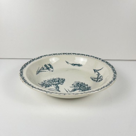 Low salad bowl with rim, "Carnation" pattern, KG Lunéville, ironstone, 19th century