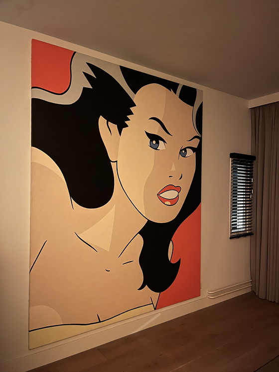 Add a bold touch to your interior with this striking artwork by Luc Verschuuren. At an impressive 240 cm, this artwork is a perfect blend of pop art and modern design. Its vibrant colors and dynamic composition make it a focal point in any room.