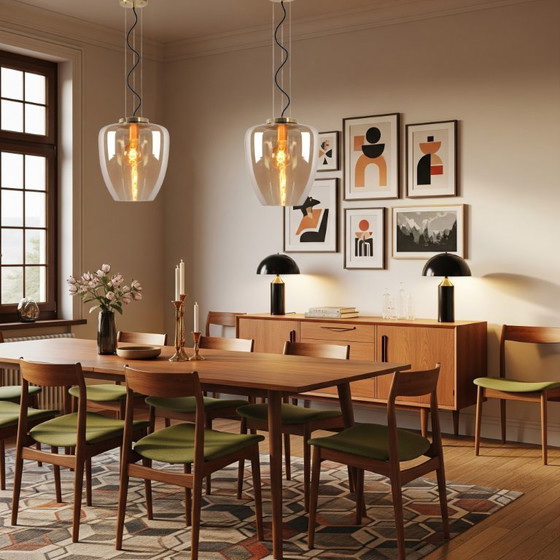 The Lucide FLORIEN pendant lamp is a refined addition to any interior. With its elegant amber glass shade and gold accents, this lamp exudes a warm and inviting ambiance. Perfect for above the dining table or in the living room, this lamp combines style and functionality.