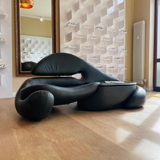 This Luigi Colani armchair, known as the 'Madonna and Child', is an iconic piece from the 60s in Mid - Century Modern style. The sofa is characterized by its organic shape and the high-quality black leather that gives it an elegant and timeless look. It is a perfect example of Colani's unique design approach, combining functionality with artistic aesthetics. Ideal for collectors and lovers of vintage furniture, this piece offers both comfort and a strong visual statement.