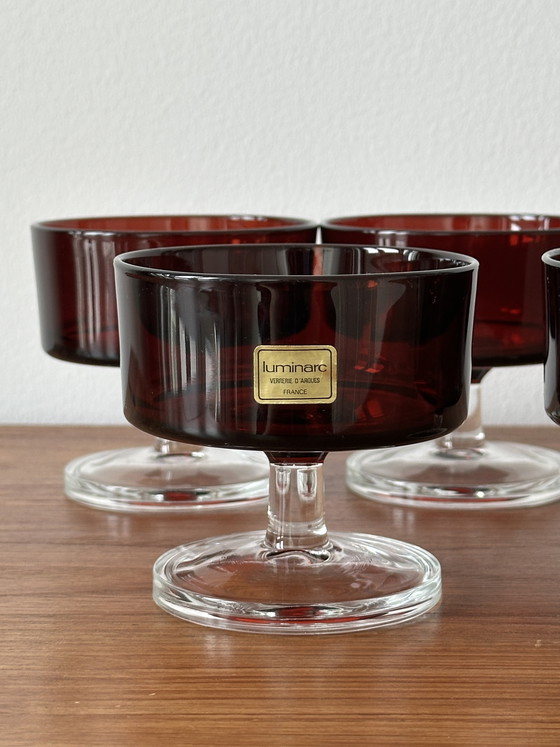 Add a touch of vintage charm to your gatherings with these Luminarc Verrerie D’arques Ruby Red champagne/dessert coupes. Perfect for serving bubbly or a delightful dessert, these coupes are sure to impress your guests with their rich ruby red hue and elegant design.