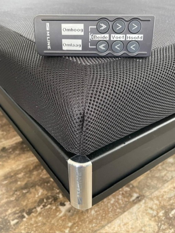 M-line single box spring bed base (without mattress) 90 x 200 cm, electrically adjustable, equipped with two motors and operated with a wireless remote control.