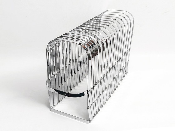 The magazine rack is in good condition with minor signs of wear—discoloration on the chrome on the hinges.