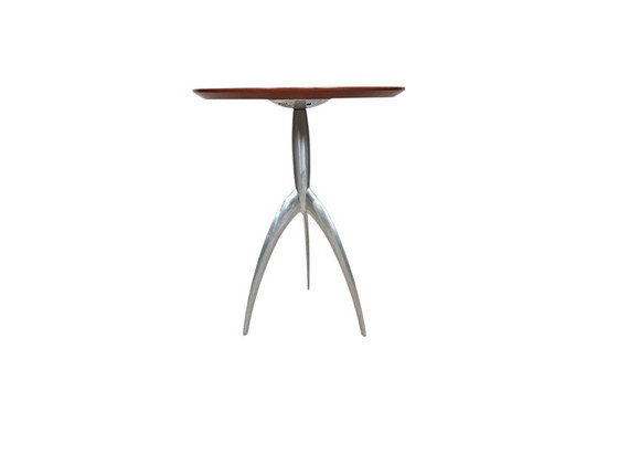 Discover the timeless elegance of the Magis Jolly side table, designed by the renowned Marc Berthier in the 1990s. This Italian creation combines a refined aluminum base with a beautiful wood veneer tabletop, adding a touch of modernity to any room. The tabletop is crafted from high-quality wood veneer, which exudes warmth and style. The aluminum base offers not only stability but also a contemporary look that fits perfectly into a modern interior. Designed by Marc Berthier, an icon in the design world, this table is a valuable collector's item. Add a piece of design history to your interior with this unique side table from Magis.