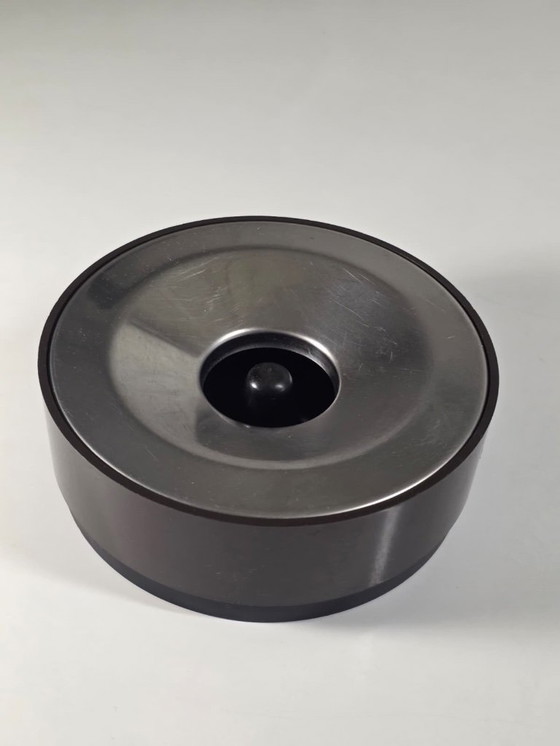 Vintage ashtray produced by SAMP Design in the Manade series, designed by Jean-René Talopp in the 1970s. Made of molded, brown-tinted plastic, its design is typical of the era: simple lines, functional, robust, and easily integrated into a retro, modernist, or brutalist interior.