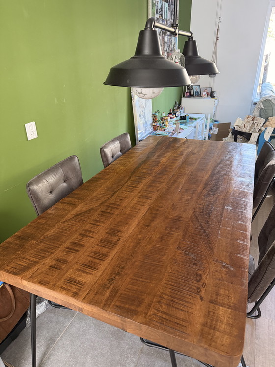 Beautiful, robust mango wood dining table with an industrial look.