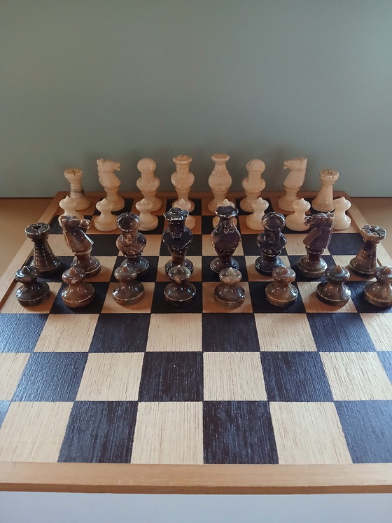 This beautiful marble chess set from Italy brings a touch of elegance to your living room. With its classic appearance and high-quality materials, it is a real eye-catcher for every chess enthusiast.