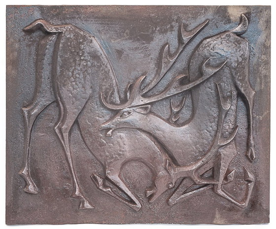 Cast iron fireplace backplate. Signed "L. Martinez". Stern Foundry Circa 1950