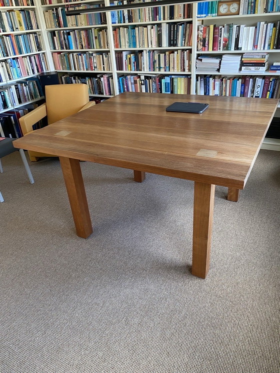 Ontdek de tijdloze elegantie van deze massief houten tafel van het gerenommeerde Italiaanse designmerk Riva 1920. Met zijn afmetingen van 125x124,5x76,5 cm biedt deze tafel voldoende ruimte voor een gezellig diner met vier personen. De robuuste poten van 8x8 cm zorgen voor een stabiele basis en benadrukken het hoogwaardige vakmanschap.