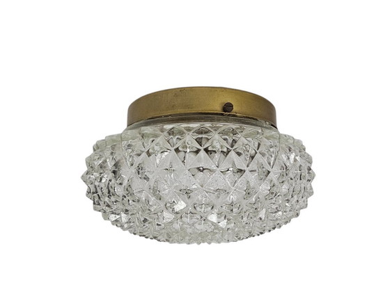 Experience the timeless elegance of the 60s with this beautiful Hollywood Regency style ceiling lamp. Manufactured in Belgium, this lamp combines the luxury of crystal with the warm shine of brass, creating a sophisticated and stylish look that enriches any space.