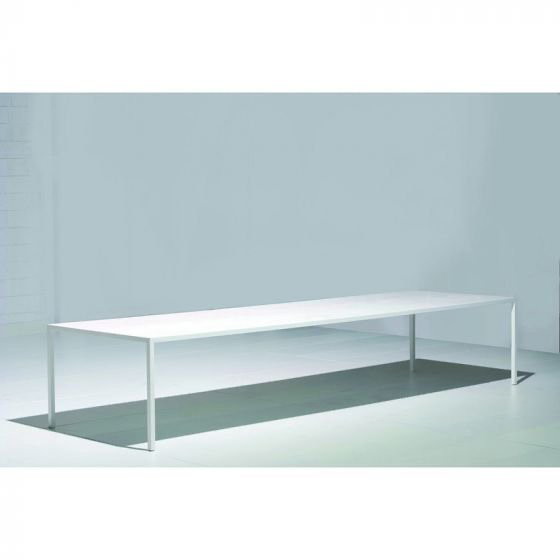 The MDF Italia Tense table is a masterpiece of minimalist design, offering a seamless blend of form and function. Designed by Piergiorgio and Michele Cazzaniga, this table exemplifies the art of 'design by simplification,' stripping away unnecessary details to reveal a powerful, timeless piece that brings tranquility and balance to any space. Its monomaterial look, with the top, legs, and edges crafted from the same material and color, provides a serene and sleek appearance. Beneath its simple exterior lies ingenious engineering: a special tension system ensures stability even in the longest models, up to 4 meters. This makes the Tense table a perfect fit for any living or working environment, whether you seek a compact dining table or a striking centerpiece for a large dining room or office. The clean lines truly shine in any setting.