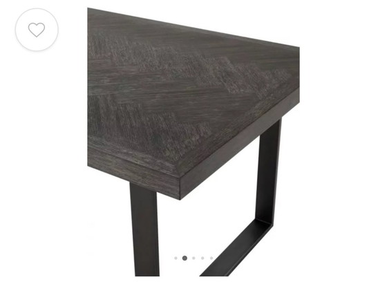 The Melchior dining room table by Eichholtz is a stylish and modern addition to any dining room. Made of high-quality wood with an elegant herringbone pattern and sturdy metal legs, this table offers both durability and aesthetic appeal. Perfect for hosting dinner parties or as a centerpiece in your dining space. (Optional with matching dining chairs)