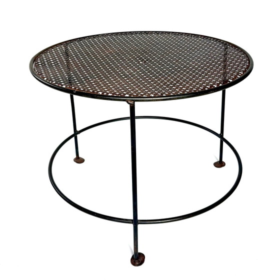 A very sturdy metal table with a unique perforated top. It's attributed to Mathieu Matégot (or a contemporary, 1950s), but I haven't been able to find any evidence of this.