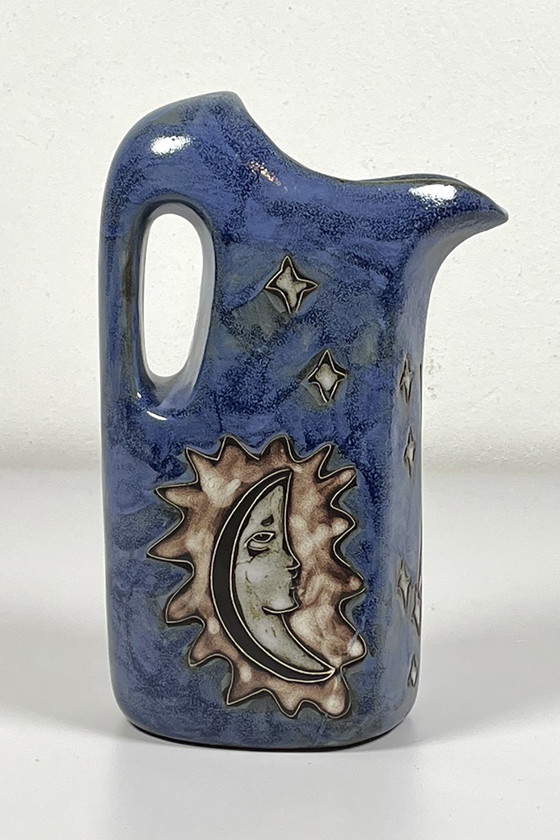 Mexican ceramic jug/vase with various typical Mexican depictions on both sides. The jug is marked and in good vintage condition.