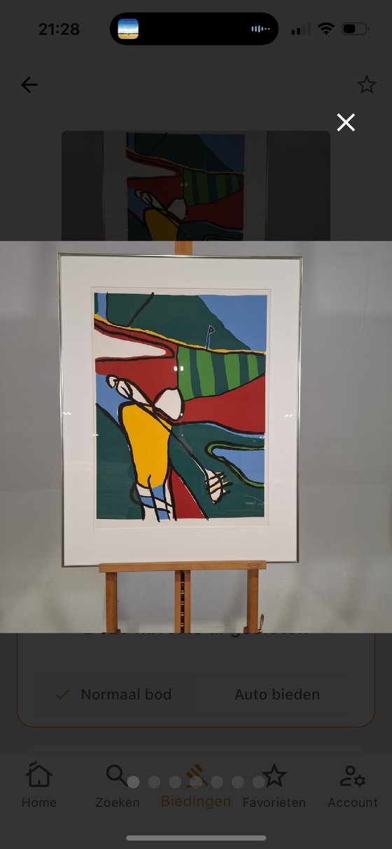 A beautiful and powerful work by Dutch artist Michiel Poort, titled “18th Hole.” An expressive and colorful artwork with a clear reference to golf, executed in Poort’s recognizable style: dynamic lines, strong color fields, and a playful, almost abstract composition.