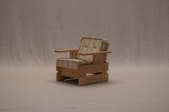 Freshly reupholstered in a bold linen textile by Bruder, this 1960s mid-century easy chair makes an immediate statement with its lemon-yellow stripe—a playful yet refined accent that adds vibrancy and softness. The fabric’s texture and pattern highlight the chair’s sculptural quality, ensuring it stands out as a centerpiece in any interior.