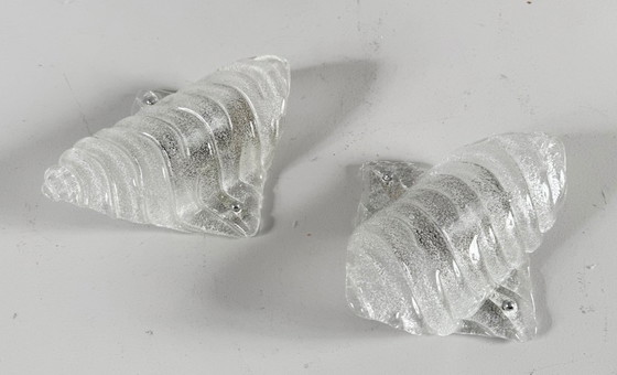 Mid-century frosted glass wall lamps/lights, Murano, Germany, 1970s, solid construction made of transparent glass, one light source included.