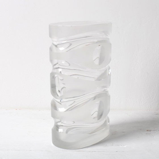 Mid-century Rare Glass Vase / Heavy Stylish Iced and Polished Crystal Class Vase / Peill & Puzzler / Germany / 1960s.