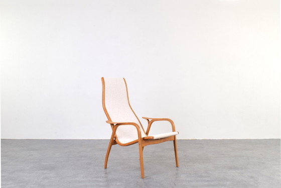 The Lamino easy chair was designed in the 1950s by the world-famous Swedish designer Yngve Ekström and was produced by the Swedish manufactory Swedese. The Lamino armchair is appreciated for its timeless design, which provides great sitting comfort, and thanks to the materials used, it makes the armchair very light. Wooden elements are made of bent oak wood and have been professionally and carefully restored by removing old coatings, staining, and finishing with varnish. The seat and backrest are upholstered in beige woolen fabric.