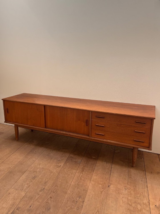Beautiful vintage teak sideboard in timeless Mid-Century Modern Danish design. This elegant credenza is perfect as a stylish TV unit or a stunning centerpiece in any living room.