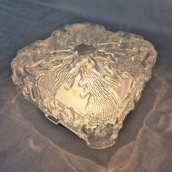 mid century modern light, space age lamp, vintage ceiling light, flush mount light, glass ceiling lamp, textured glass light, german lighting, honsel style, limburg lamp, doria light, 1970s lighting, ice glass lamp