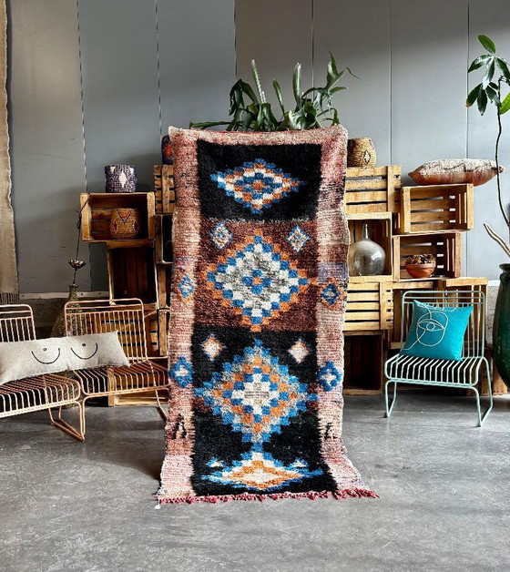 This abstract Moroccan rug would fit perfectly in your living room or in your home office, even in your kitchen, all depends of your taste and your free place. To catch the attention of your visitors that will surely ask you where do you get this pearl of Berber culture.