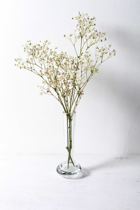 Mid-century Small Vintage Clear Single Flower Glass Vase / Pukeberg / Sweden / 1960s.