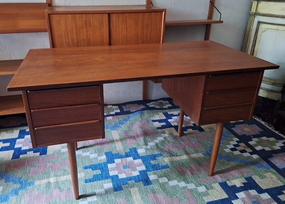 Mid century stylish and well constructed desk in teak, Denmark 1960s.