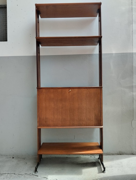 FREE STANDING ITALIAN TEAKWOOD LIBRARY