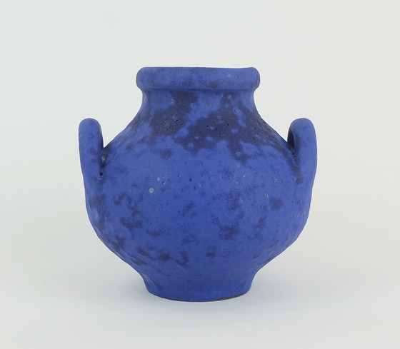 Ceramic vase from the 1960s, produced by Hartwig Heyne Keramik, West Germany. Matte lava glaze in two intense blue tones. Marked on the bottom with model number.