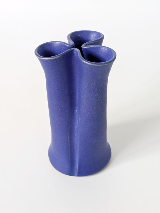 This striking midcentury ceramic bud vase was crafted by Danish ceramicist Aage Würtz in the 1960s. Its organic rounded shape, pinched in three places at the top, brings to mind a delicate three-leaf clover.