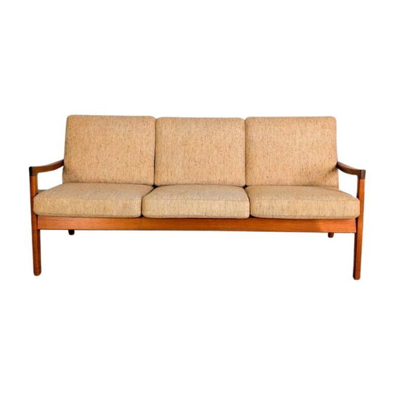 We are offering a beautiful teak three-seater sofa by France & Son from the 1960s for sale. This piece of furniture impresses with its minimalist design, its typical Scandinavian charm of the Mid-Century era, and has been professionally restored.