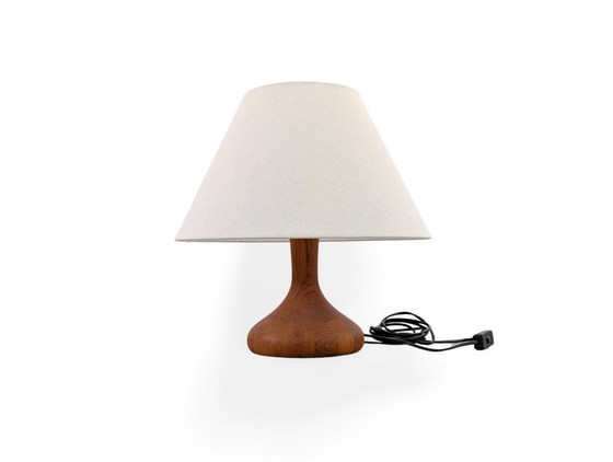 We are offering a beautiful teak table lamp from the traditional Danish manufacturer Domus, dating from the 1960s, for sale. The high-quality wooden base has been professionally refinished, and the lampshade has been replaced.