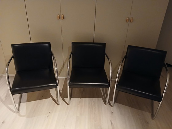 Mies van der Rohe Brno Chair – Tubular, 3 pieces. Beautiful sleek black leather finish, in very good condition.