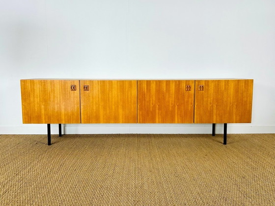Magnificent vintage Scandinavian teak sideboard dating from the 1960s, featuring four storage doors with shelves.