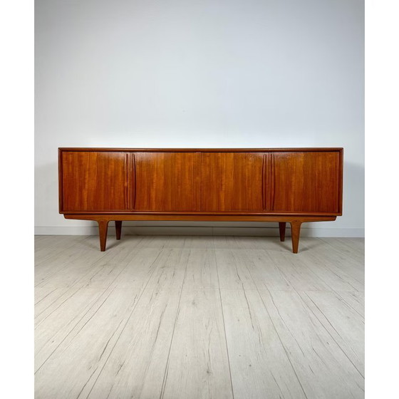 Beautiful Mid-Century teak sideboard with plenty of storage space. Minimalistic Danish design made from teak wood, 1960s. Offers a lot of storage space. One shelf is missing. Neat condition with a few age-related signs of use. The sideboard has been professionally restored.