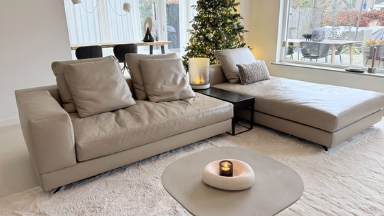 Beautiful white corner sofa from the top brand Minotti. This sofa is a real eye-catcher in your living room and offers wonderful seating comfort. The sofa is in good condition and is upholstered in high-quality Pelle 781 mastic leather.