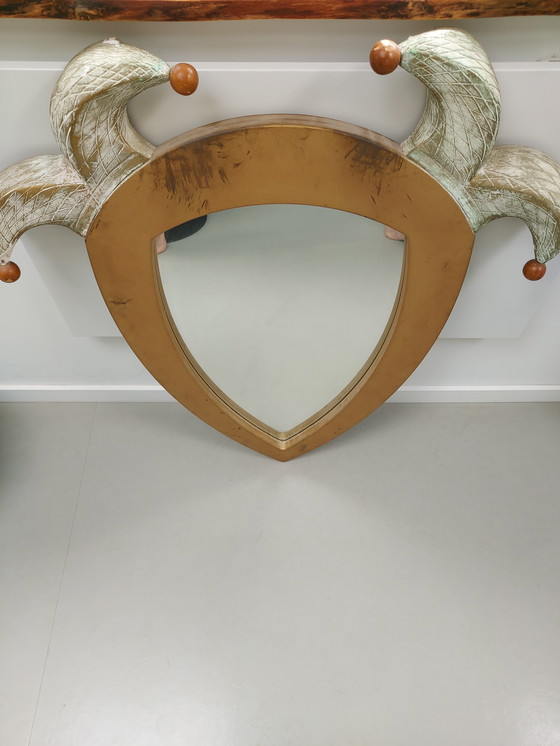 Rare mirror with at the top 2 "Jester's hats" made of plaster.