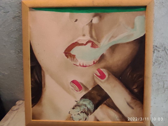 Woman Smoking canvas by Venetian artist born 1947 died 2026 high school art teacher produced many paintings.