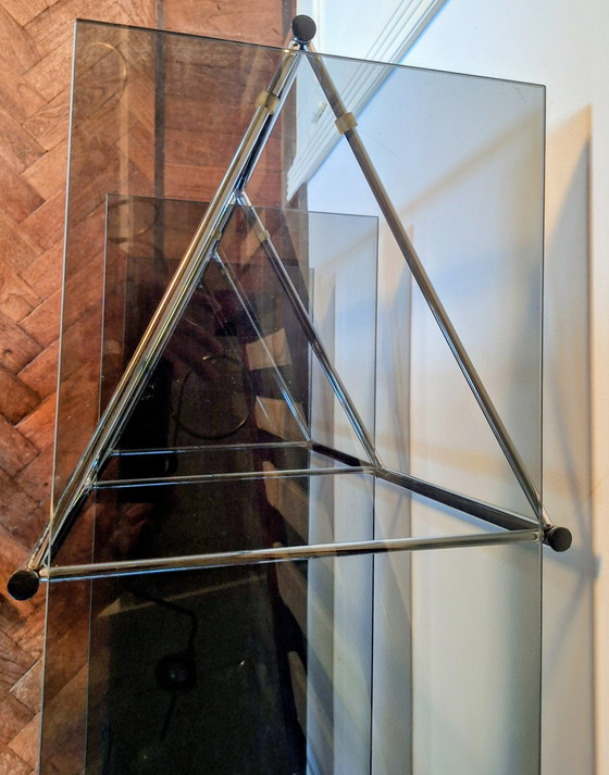 Discover this beautiful postmodern modular wall system from the 1980s, a paragon of elegance and functionality. This system offers a versatile solution for your storage and display needs, with a timeless design that fits effortlessly into any modern or retro interior. The combination of smoked glass and chrome metal creates a refined look that is both stylish and durable. Perfect for displaying your favorite books, artwork, or decorative objects, this wall system is a must-have for the design-conscious buyer. Free shipping within a 230 km radius, excluding the Wadden Islands.