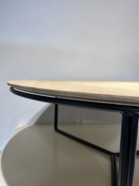 Clearance Available in: Natural oak wood Black metal frame Dimensions: Diameter: 90 cm Height: 36 cm All sizes are approximate