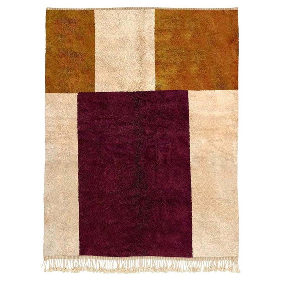 Discover the timeless elegance of this Moroccan wool rug, measuring 250 cm by 150 cm. This handcrafted masterpiece harmoniously blends rich shades of brown, cream and red, bringing a warm, sophisticated touch to your home.
