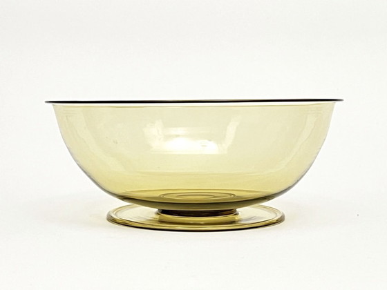 The color, thickness of the glass, and shape are reminiscent of the transparent bowls produced during those years.