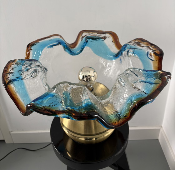 Very beautiful, unique Murano glass table lamp in perfect condition. As can be seen in the photos, the lamp creates a special light effect due to reflection in the glass. Height 28 cm. Diameter 44 cm.