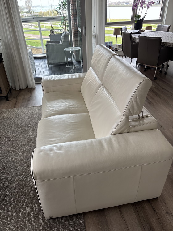 Introducing the Natizzu sofa, a sophisticated addition to any modern living space. This elegant piece, upholstered in a luxurious crème leather with contrasting dark piping, offers both style and comfort. Its sleek design is perfect for those who appreciate contemporary aesthetics.