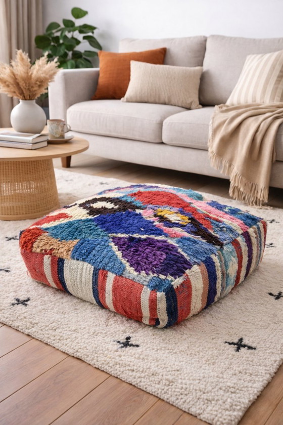 Authentic Berber Pouf ✅️High Atlas Mountains, Morocco ✅️Handmade ✅️Artisanal ✅️100% Sheep's Wool ✅️Unique ✅️Bohemian Style / Home Decor ✅️Dimensions 65 x 65 cm ✅️Sold without filling