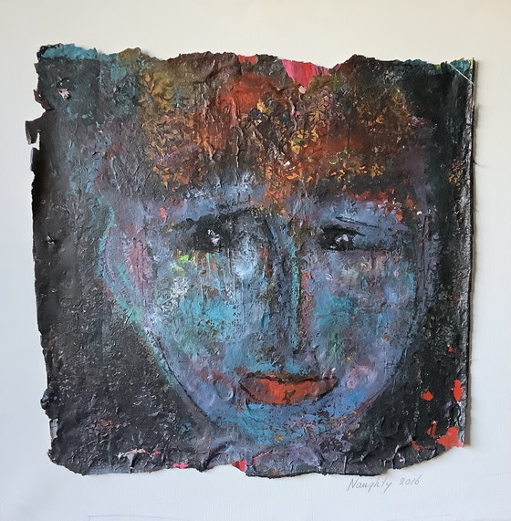 This painting is roughly cut out and glued to a linen frame of 60 x 60 x 2 cm.