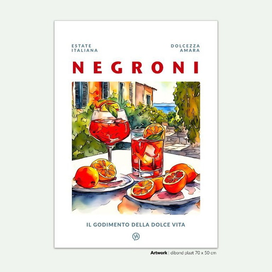 Experience the essence of the Italian summer with this beautiful Negroni Aperitivo artwork. The vibrant colors and detailed composition bring to life the charm of a sunny Mediterranean day. Printed on high-quality aluminum dibond, this artwork offers a non-reflective finish that enhances any space.